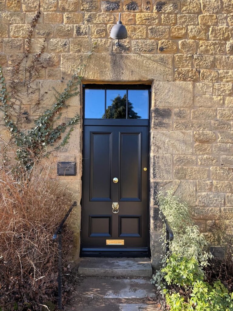 At R J Parry, we manufactured this striking black Accoya door and frame, designed to create a bold yet timeless entrance. Alongside it, we produced bespoke Accoya sliding sash windows, carefully designed and manufactured in-house to replicate the property’s original architectural style.